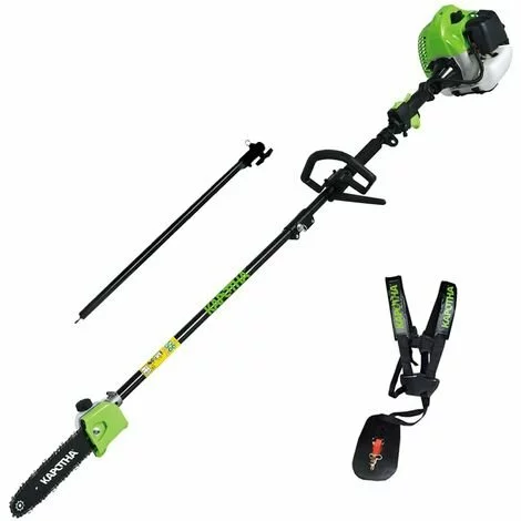 Tronçonneuse d’élagage de hauteur de marque Kapotha Ultimate avec 3,6 mètres de portée. Créé pour les travaux d’élagage avec un moteur léger et puissant de 65 cm3 et 4,9 CV, 25 cm et 10 « sprat et avec chaîne OREGON.