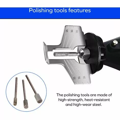 QUALITÉ ET PRODUIT UNIVERSEL: Notre affuteur de chaine est en acier inoxydable et l’ABS de haute qualité. Cet affuteuse chaine est installé sur un broyeur et peut donc avoir une vitesse réglable, lo permet une finition propre et précise sur chaque dent de la chaîne.