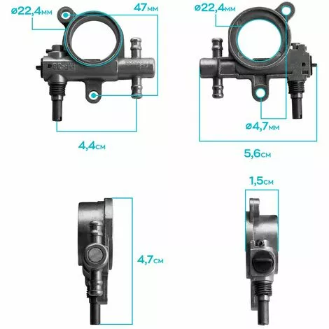 Pompe à huile de chaîne fabriquée en alliage d’aluminium résistant. Extrêmement fiable et durable. Compatible avec la plupart des tronçonneuses entre 20cc et 30cc.