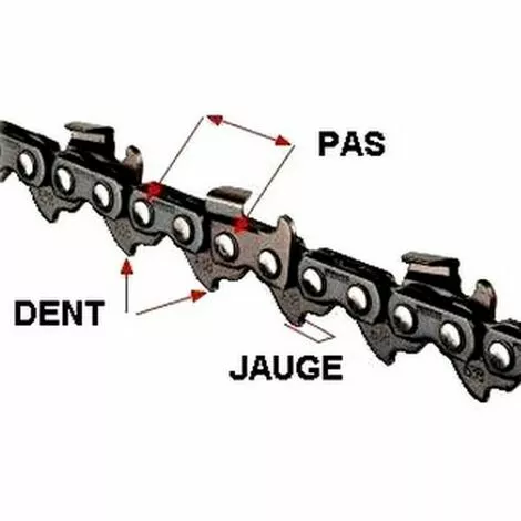 Pas: 3/8 ( grosse chaine ) soit 19.05 mm ( distance entre 3 rivets )