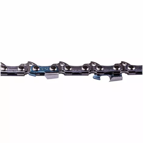 Chaînes semi-chisel à dents tranchantes légèrement arrondies et coupe étroite. Revêtement chromé renforcé sur les dents tranchantes pour une prolongation significative de la durée de vie.