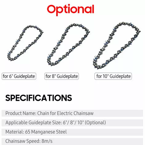 Chaîne de rechange pour votre tronçonneuse électrique. Vous pouvez préparer des chaînes de rechange pour une utilisation d’urgence.