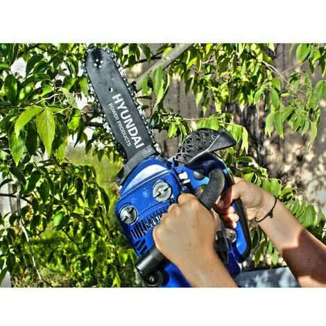 - Cette élagueuse thermique Hyundai est destinée aux particuliers souhaitant effectuer des travaux d’élagage, de débitage ou de l’ébranchage de précision.