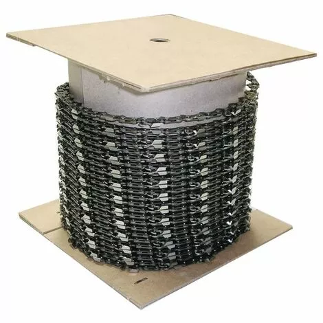 Rouleau de chaine semi-professionnelle pour tronçonneuse livré avec maillons et boîtes, Pas 325, Jauge 1.5mm (058), Gouges demi-ronde (semi-chisel), longueur 25 pieds soit 462 maillons. Poinçonnage spécial des rivets avec bride durcie, teneur en chrome élevée, sommet de la gouge plus long que la plupart des autres chaines. Acier Allemand pour une grande résistance à l’usure et une excellente tenue à l’affutage (tout en conservant une excellente facilité d’affutage !) Chaine disponible en rouleau de 100 Pieds et en gouges carrées (chisel)