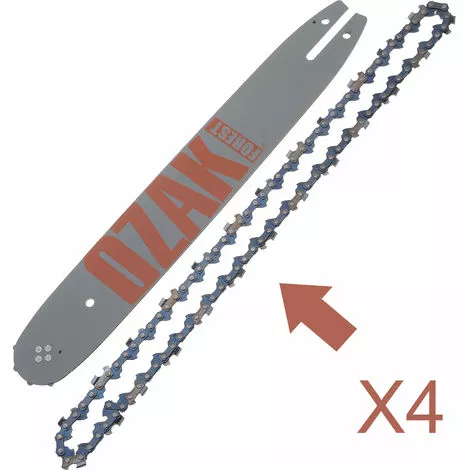 Ensemble comprenant 1 guide Pro 35cm + 4 chaînes pour tronçonneuse 50 maillons entraineurs Pas 3/8 jauge 0.50 (1.3mm). Correspondances Oregon : Guide 140SDEA318, Chaînes 91-50E, se monte sur les marques ALKO, ALPINA, CASTOR, MC CULLOCH, POULAN, PARTNER, GARDEN et REMINGTON, voir tableau d’affectation en photo. Découvrez également notre kit 1 guide + 1 chaine 50 maillons entraineurs ou guide vendu seul.