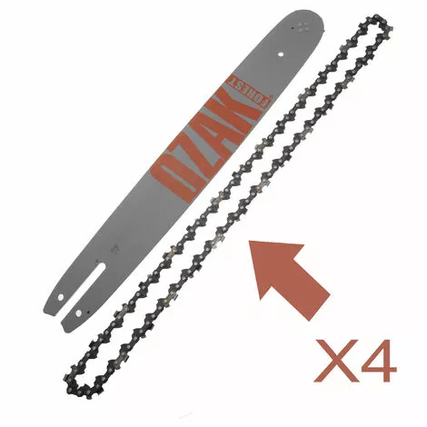 Ensemble comprenant 1 guide Pro 40cm + 4 chaînes pour tronçonneuse 56 maillons entraineurs Pas 3/8 jauge 0.50 (1.3mm). Correspondances Oregon : Guide 160SPEA074, Chaînes 91-56E, se monte sur les marques ALPINA, BLITZ, CASTOR, DYNAMAC, EFCO, GARDEN, METABO, NAUTAC, OLEO MAC, OLYMPYK, STIHL, STIGA, VAP, voir tableau d’affectation en photo. Découvrez également notre kit 1 guide + 1 chaine 56 maillons entraineurs ou guide vendu seul.