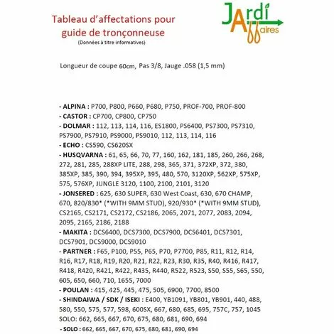 JARDIAFFAIRES Guide 60cm Avec 4 Chaines Pour Tronçonneuse Pas 3/8 Jauge 1,5mm Remplace 248ATMD009