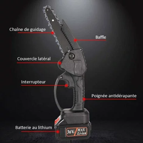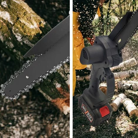 La mini tronçonneuse de 6 pouces est équipée de deux batteries, de gants anti-coupures, d’un chargeur, d’une plaque de guidage, d’une chaîne, d’un tournevis et d’une clé. La tronçonneuse est petite et facile à utiliser, protégez vos mains des blessures après utilisation. Batterie de grande capacité, longue durée de vie de la batterie. La tronçonneuse est équipée d’un moteur en cuivre pur, puissant. La tronçonneuse est également équipée d’un emballage en plastique, ce qui est pratique à ranger après une utilisation quotidienne, permet d’économiser de l’espace et d’éviter la perte de pièces de rechange. C’est une bonne aide pour organiser les cours et les jardins.