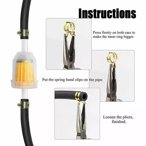 【Comment utiliser l’emballage】 : L’emballage contient 3 mètres de filtre à carburant Ø 5 mm ; 4 pièces de filtre à carburant de 8 mm; 10 colliers de serrage. Des filtres à carburant et des colliers de serrage sont nécessaires pour utiliser un tuyau de carburant.