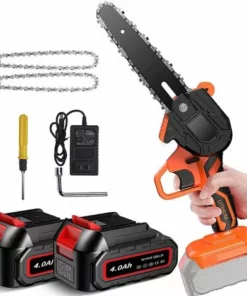 MAGICFOX Mini tronçonneuse, tronçonneuse à batterie sans fil de 6 pouces 21 V, tronçonneuse électrique rechargeable à une main portable pour la coupe de bois de branches de coupe d’arbres. La tronçonneuse sans fil a un design ergonomique et léger avec des performances élevées, ce qui en fait un outil parfait pour la ferme, le jardin et la maison utilisation.
