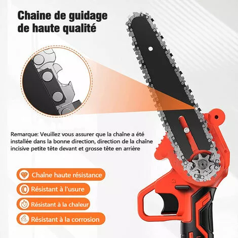 La chaîne de scie très tranchante et extrêmement dure de la scie électrique rend le sciage du bois lisse sans se coincer ni se coincer, difficile à casser et durable.