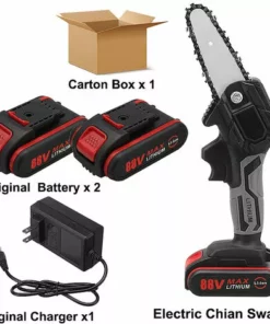 LBTN Mini Scie à Chaine 1200W Electrique élagage Portatif 88V Petite Chaine Rechargeable 2 Batterie 1200W
