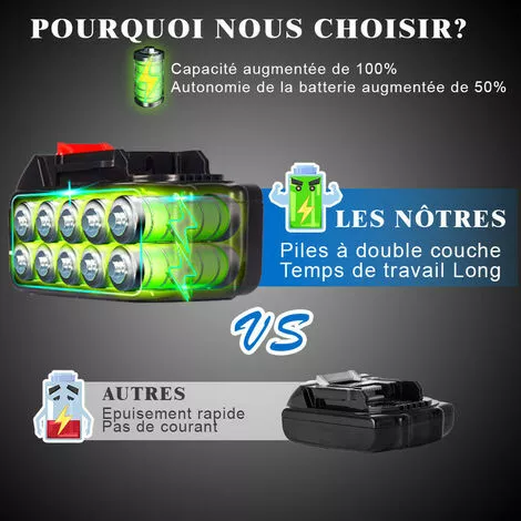 -Par rapport à la batterie Makita d’origine, notre poids de batterie est plus léger et plus pratique.