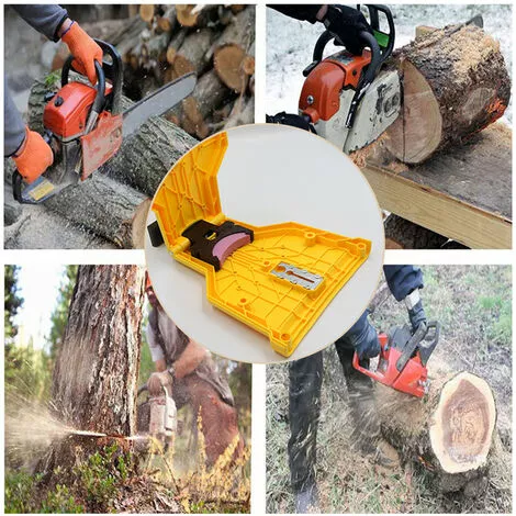 Cela donne à l’utilisateur le pouvoir d’aiguiser sa chaîne, sur la scie, au travail.