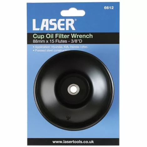 Cloche de filtre à huile 88 mm 15 pans Exemple de véhicules compatibles : Honda I-dtec diesel Hyundai Kia 3.3 et 3.8 V6 essence. Carré d’entrainement 3/8 (9.52 mm), matière acier.