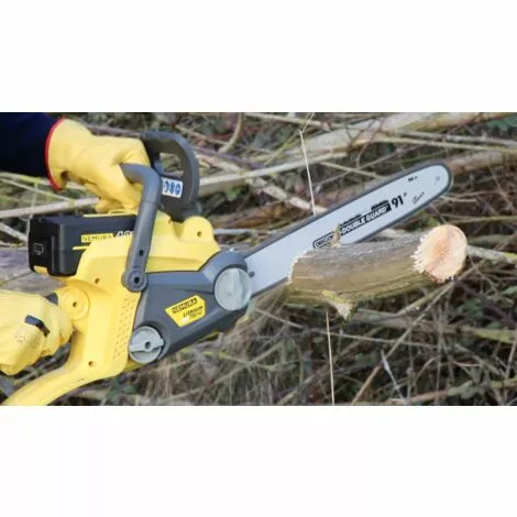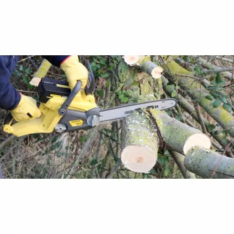 - La tronçonneuse, est équipée d’un tendeur de chaîne à réglage rapide ainsi que d’un graissage automatique de la chaine, de qui allongera la durée de vie de votre machine et de vos chaînes, et assurera une qualité de coupe supérieure.
