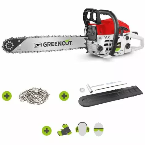 La tronçonneuse GS610X GREENCUT thermique pour abattage et élagage à moteur à essence et lame de 20″, est idéale pour les personnes qui ont besoin d’une tronçonneuse puissante et efficace pour abattre ou tailler des arbres ou tout autre type de travaux forestiers.