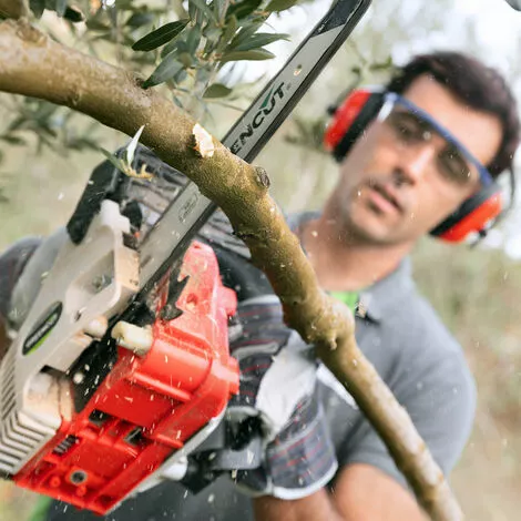 Le frein de chaîne sans recul arrête immédiatement la scie lorsqu’il détecte un recul et garantit une sécurité totale. De plus, la chaîne est équipée de la technologie TRU-SHARP qui minimise les blocages lors des travaux de coupe. Il est équipé d’un tendeur latéral de chaîne qui facilite la tension et prévient la détérioration.