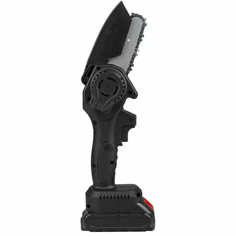 spécification :Matériau : ABS + métalCouleur : NoirVitesse à vide : 600 (tr/min)Puissance : 800WLongueur de la plaque de guidage : 4 poucesVitesse de la chaine : 5m/sTaille de coupe : <100mmTemps de travail : a La batterie peut durer 1,5 heures. Fonctionnalité?: Petite taille, peut être tenue d’une seule main.?Pratique, consommation d’énergie rapide et faible.?Interrupteur de réglage, réglage de la vitesse rapide et lente, changement de vitesse en continu.Le moteur en cuivre pur brossé a une forte puissance, vitesse de coupe rapide et efficacité améliorée.?Chaine de guidage, trempe profonde, coupe plus résistante à l’usure, en douceur.Tron?onneuse électrique rechargeable, légère et portable, longue durée de vie de la batterie et n’endommagera pas l’écorce.Corps Corps léger, léger et pratique, conception légère, la tenue de longue durée ne fait pas mal aux mains.?Carte de commande de circuit intelligente, protection contre les surcharges, pour répondre à vos différents besoins de construction.?Convient pour l’élagage des branches dans les vergers, l’élagage des branches dans les villes, l’exploitation forestière familiale, les loisirs et les équipements de plein air pratiques. plaque de guidage?n’a pas besoin de lubrifier la bille d’acier au tungstène, de sorte que la machine peut réduire la résistance pendant le fonctionnement et réduire l’usure de la machine.